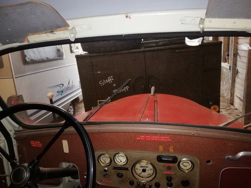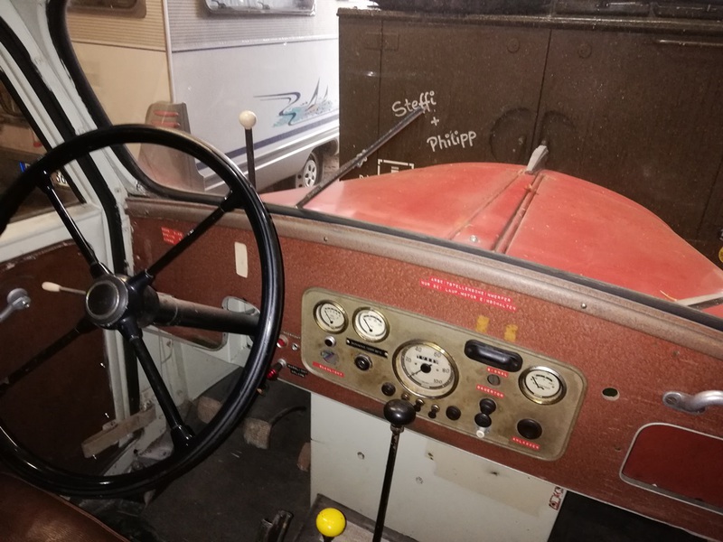 Koffer und das komplette Fahrerhaus bestehen aus Stahlblechen die auf Holzrahmen aufgebracht wurden - also noch eine echte Stellmacherarbeit... Martins Glück - das Holz ist in fast tadellosem Zustand und ein Kilometerstand von nicht einmal 11.000 km, bedenkt man das Alter des 1956 gebauten Fahrzeugs.