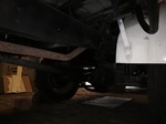 Überall unter dem von der Feuerwehr Landshut aufgebrachten Rot kommt die orginale britische grüne Militärlackierung durch, der Sicherungskasten ist zweisprachig und auch die Leitkreuzleuchte über der Hinterachse wirkt "exotisch" ...